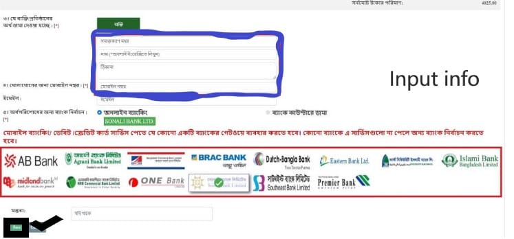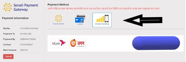 তবে সোনালী ব্যাংক সিলেক্ট করুন যদি রকেট, বিকাস, নগদ দিয়ে ফি পেমেন্ট করতে চান। সোনালী ব্যাংকের অনলাইন একাউন্ট, ডেবিট ও ক্রেডিট কার্ড থেকেও পেমেন্ট করতে পারবেন।