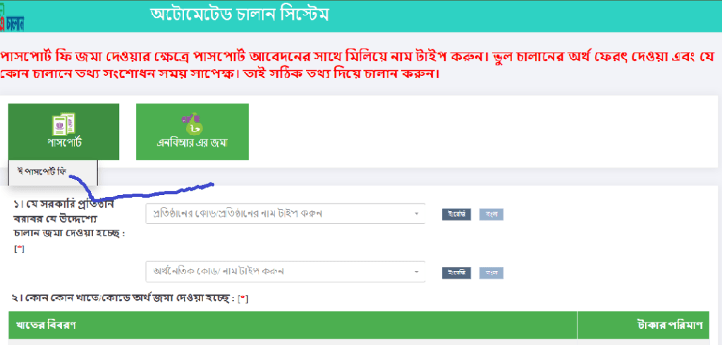 অনলাইনে ই পাসপোর্টের টাকা জমা দেওয়ার নিয়ম।